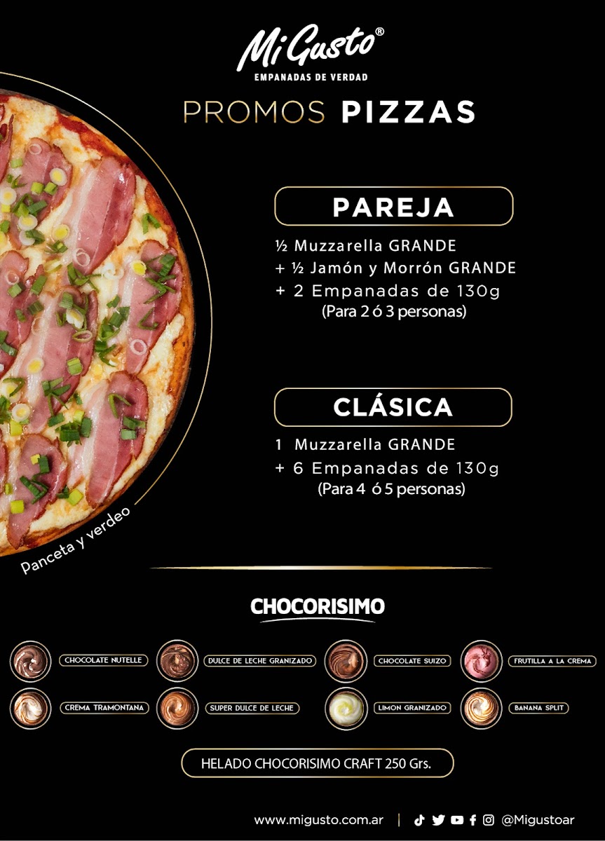 Introducing "Mi Gusto," a delightful pizza restaurant nestled in Pilar Centro, Buenos Aires. Known for its hearty offerings, Mi Gusto exemplifies Argentine culinary staples—boasting not only a tempting array of pizzas but also their signature "Empanadas de Verdad." These giant empanadas, weighing 130 grams each, are packed with flavor and made from quality ingredients. Promotions such as two empanadas with a soda or packs of six with free sauces make dining both satisfying and affordable.